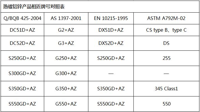 結構用鍍鋅:SGCC、DX51D+Z、DX52D+Z、DX53D+Z、S350GD+Z、S550GD+Z、G550、SGC340、SGC400、SGC440、SGC490、SGC570、SGH340、SGH400、SGH440冷軋深沖板:SPCC、DX51D+Z、DX52D+Z、DX53D+Z、DC03、DC04、DC05、DC06、DC07、ST12、ST14、ST16
