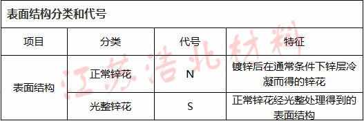 EN10215分類 特點 說明 A 正常晶花 鍍層自然再結(jié)晶形成 B 表皮光軋 經(jīng)過表皮光軋加工,適于涂漆