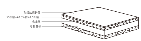 鍍鋁鋅鎂采用韓國KS D3033標準,是將鋁鋅硅鎂合金化后,熱浸鍍在鋼板上的合金,鍍層由55%鋁、43.4%鋅和鎂(鎂約1-2%)、1.6%硅組成。