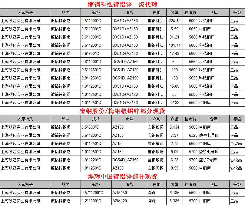 常熟邯鋼科弘環保無鉻敷鋁鋅鍍鋁鋅鋼板現貨現價